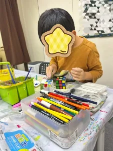 紙粘土でルービックキューブを作った小学3年生の男の子の作品は、カラフルでとても楽しげ! 好きなものを題材にすると、子どもたちは自然と集中し、細かいところまでこだわりたくなるようです。友達と見せ合って盛り上がる姿も印象的でした🤩