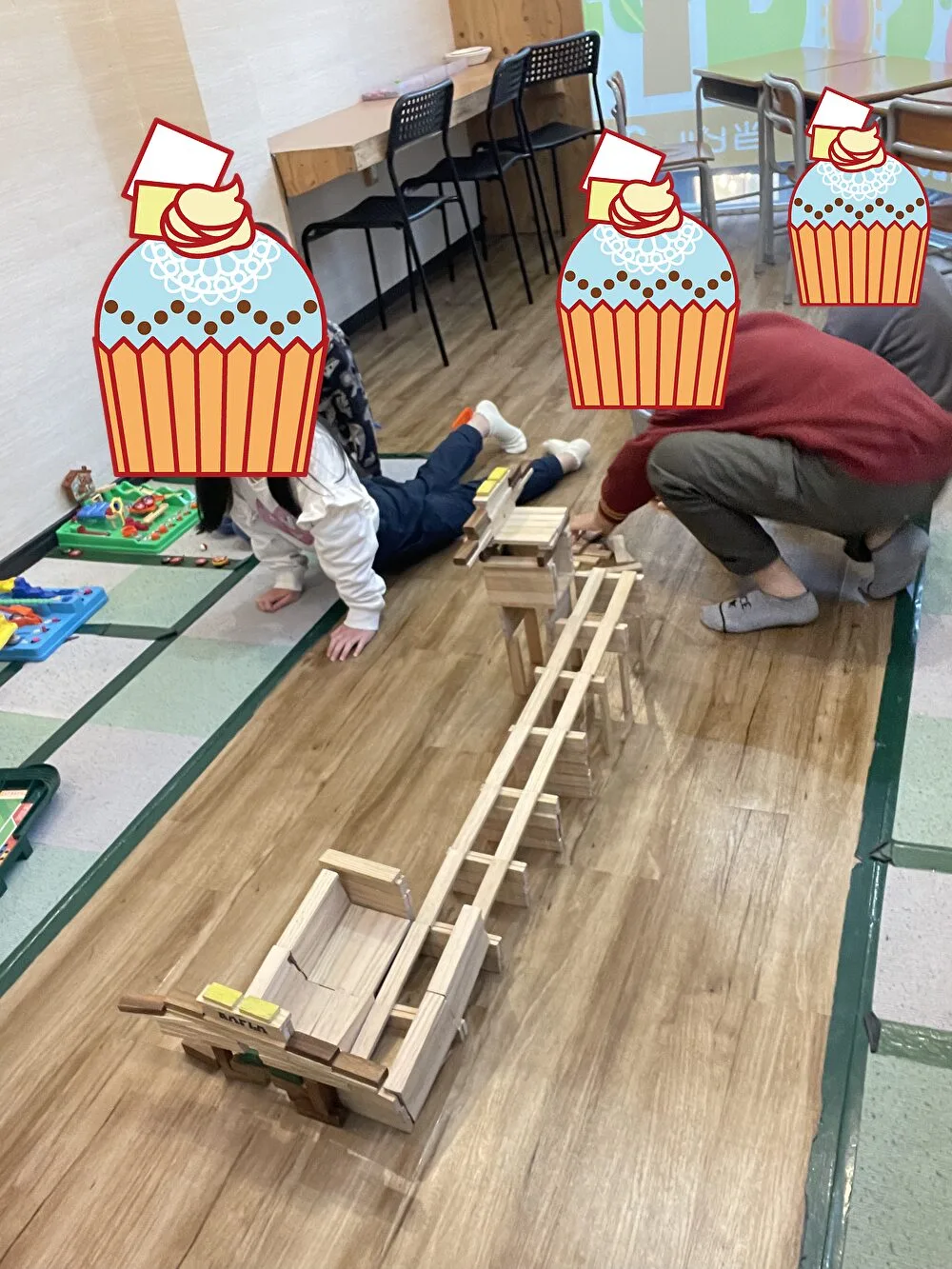 この日は会員の皆様でKAPLAを使って、レールを作って遊んでおりました。