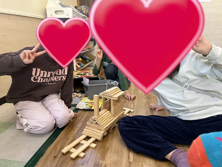 やはりなるべく高く積み上げたり、ジェンガの様にして遊ぶ会員のお子様が多いですが、中には自分ならではの建物や船や機関車などを作られるお子様も増えていました。