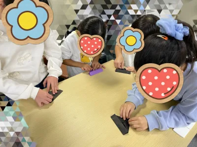 お勉強が終わると、みんなでカラフルな紙を手にワイワイ楽しむ姿があちこちで見られます👀