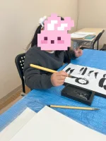 中には、今回初めて筆を握るという子も。 普段使い慣れている鉛筆とは違う、筆特有の感触や墨の香りに、少し緊張しながらも興味津々な様子で準備を進めていました。