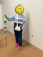 輪をつなげて作っているので、紐をひっぱって歩くとうねうね、にょろにょろ面白い動きをするんです!