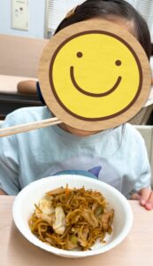 今回は、子どもたちが屋台の店長さんになりきって、美味しい焼きそば作りに挑戦しました。