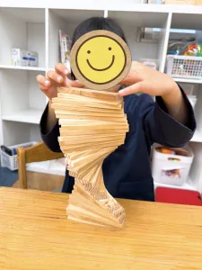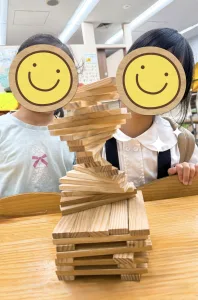 何度も崩れてしまっても、すぐに諦めず、「次はこうしてみよう!」と何度もチャレンジする姿には、強い探求心と集中力が感じられます。