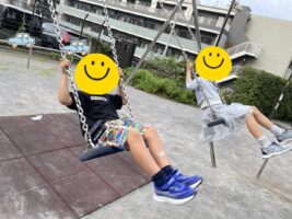 公園の滑り台やブランコなどの遊具であそんだり鬼ごっこをしたりと、それぞれの生徒が思い思いに楽しんでいます。