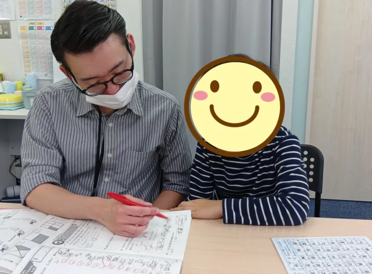 この日は先生が隣に座って生徒とノートを一緒に覗き込み