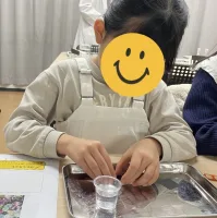 次は、砂糖や塩を 水に溶かしたり温めたりして、雪のような結晶づくりに挑戦❄️