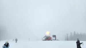 今回は、初めてスキー板を装着するときに、ふかふかの新しい雪が少しだけ邪魔をしてきました。