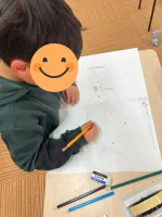 真っ白な画用紙を前に、子供たちは自分だけの世界を広げていきます。