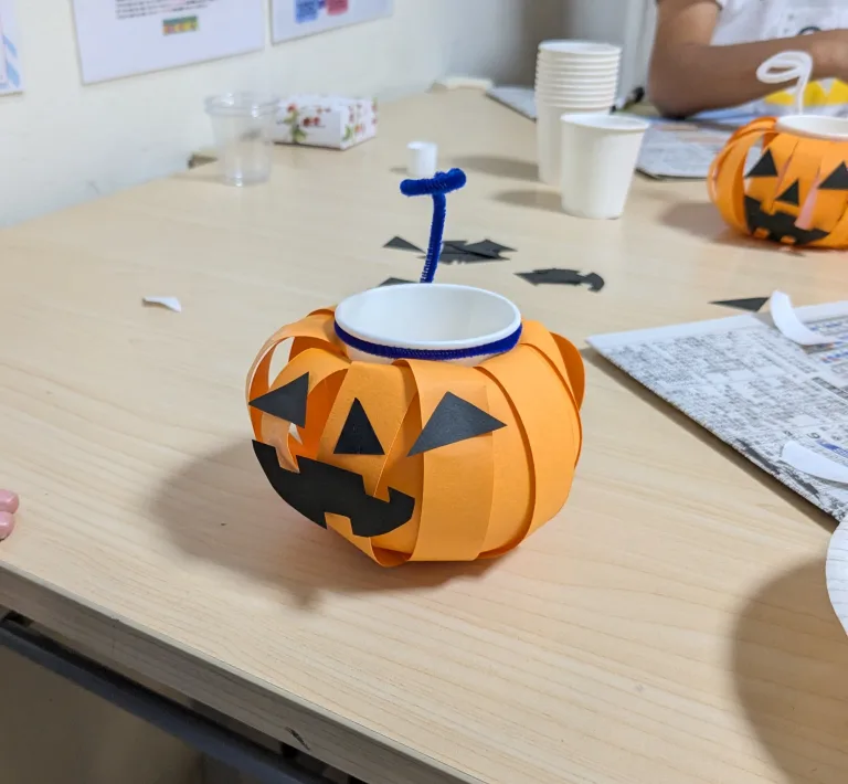 今回は更に充実した内容となり、『光るペットボトル』『かぼちゃの小物入れ』『パタパタこうもり』を作り、